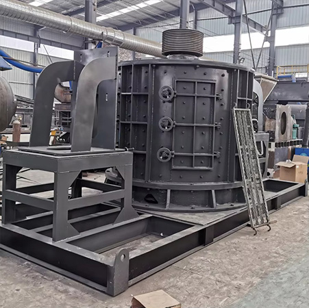 The material falls vertically from the upper part of the machine into the high-speed rotating impeller. Under the action of high-speed centrifugal force, it collides and crushes with the other part of the material that is diverted around the impeller in an umbrella-shaped form. After colliding with each other, the materials will form a vortex between the impeller and the casing, and then rub and crush each other multiple times, and then be discharged directly from the bottom, forming a closed-loop multiple circulation, and the screening equipment controls the required finished product particle size.