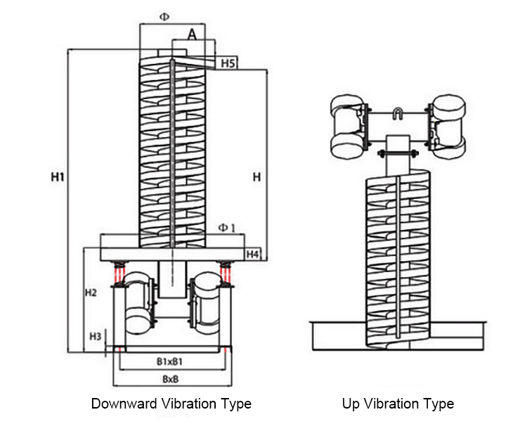 Vertical vibrating sprial elevator can convey granular, blocky, and powdery solid materials (with low viscosity). It is a new type of vertical vibration conveying equipment produced by our factory. It uses a vibration motor as a vibration source and uses the synthetic amplitude of two vibration motors to convey the material upward along the spiral conveyor trough.
